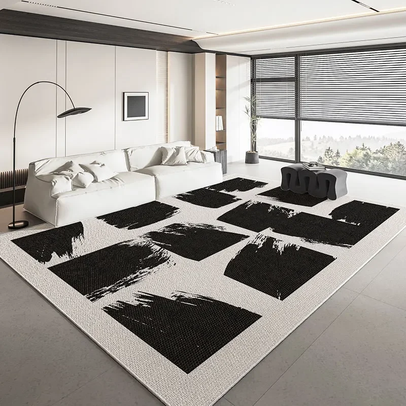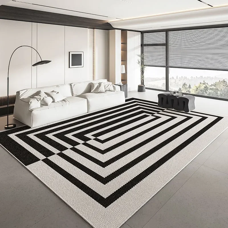 Upgrade your space with this Geometric Black & White Area Rug, designed to bring modern elegance and light luxury style to your living room or bedroom. Featuring a bold geometric pattern in classic black and white tones, this large area carpet adds depth, contrast, and contemporary charm to any interior décor.