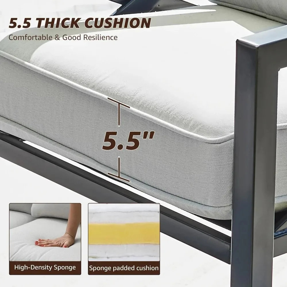 Upgrade your outdoor space with this 4-piece modern metal patio furniture set. Featuring a sleek sectional conversation sofa design, this set combines style, comfort, and durability. Each seat includes a 5.5-inch soft cushion for ultimate relaxation, while the customizable arrangement lets you fit the set perfectly to your patio, garden, or backyard layout. Crafted with high-quality metal, this set withstands outdoor elements while providing a contemporary look for entertaining or unwinding outdoors.