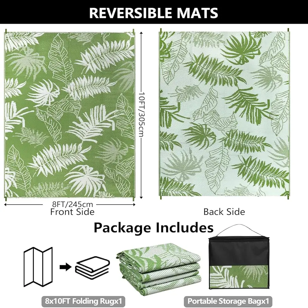 Welcome to Stylish Home Nest, where comfort meets style for your outdoor spaces. This 8×10 ft Reversible Outdoor Straw Rug is perfect for patios, decks, RVs, and gardens. Made from durable, waterproof plastic straw, it withstands rain, sun, and daily wear. The reversible design allows you to switch patterns for a fresh look anytime. Its large size makes it ideal for seating areas, dining spaces, or play zones. Lightweight and easy to clean, simply shake off dirt or hose it down. The natural straw texture adds a rustic, cozy vibe to both indoor and outdoor areas. Perfect for creating a welcoming atmosphere on porches, patios, or backyard gatherings. Designed to resist fading and maintain its shape over time. Upgrade your space with this stylish, functional, and versatile area rug.