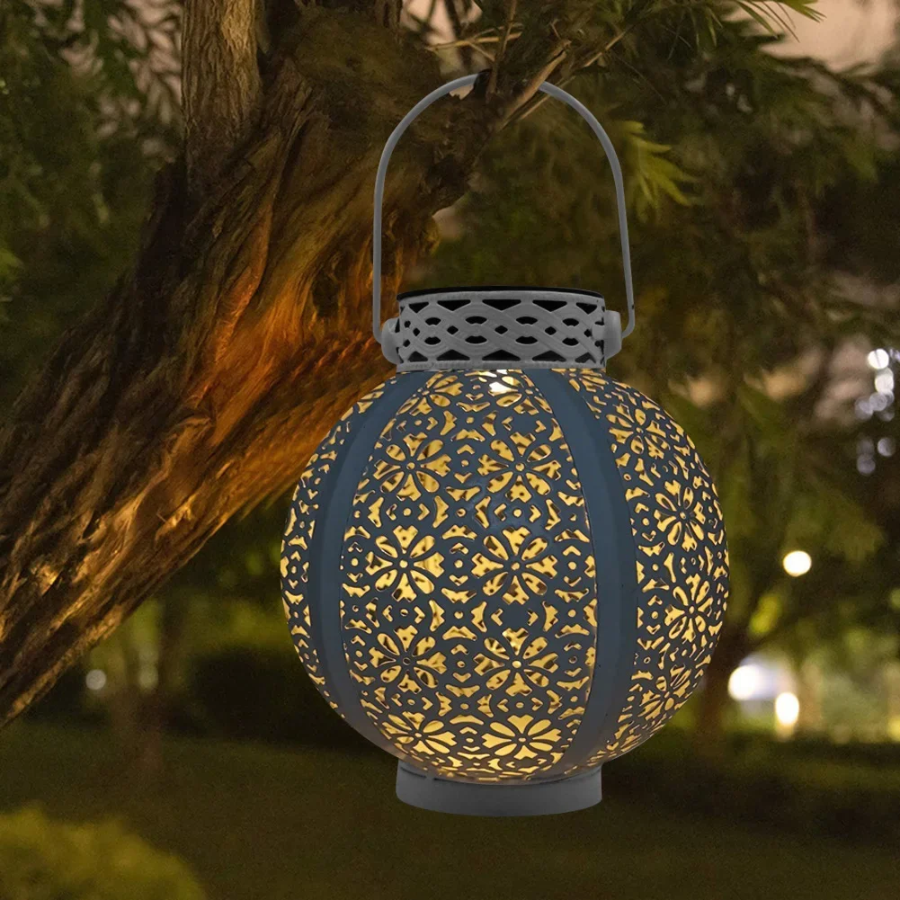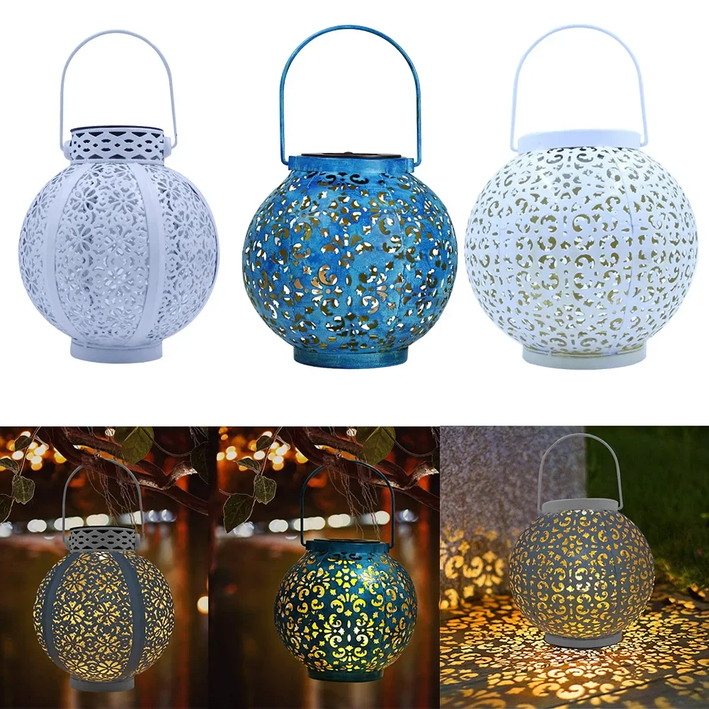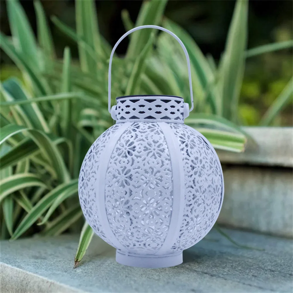 Illuminate your outdoor spaces with this Solar LED Iron Art Hollow Lantern. Crafted from durable iron with a hollow design, it casts enchanting patterns of light for a warm, decorative glow. Equipped with energy-saving solar-powered LEDs, this versatile lamp can be handheld or hung in your garden, yard, patio, or walkway. Weather-resistant and eco-friendly, it adds a magical ambiance to any outdoor setting without the need for wiring or batteries. Perfect for enhancing evening gatherings or creating a cozy atmosphere in your outdoor décor.